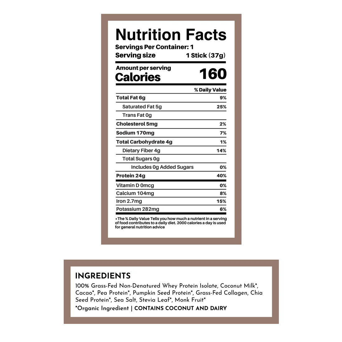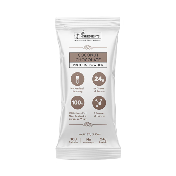 Fellas, it’s time to step up your protein game with our Coconut Chocolate Protein Powder Stick. Whether you’re powering through a workout, a long day at the office, or an outdoor adventure, this convenient stick delivers 24 grams of protein from five natural sources, including 100% grass-fed, non-denatured whey from New Zealand.