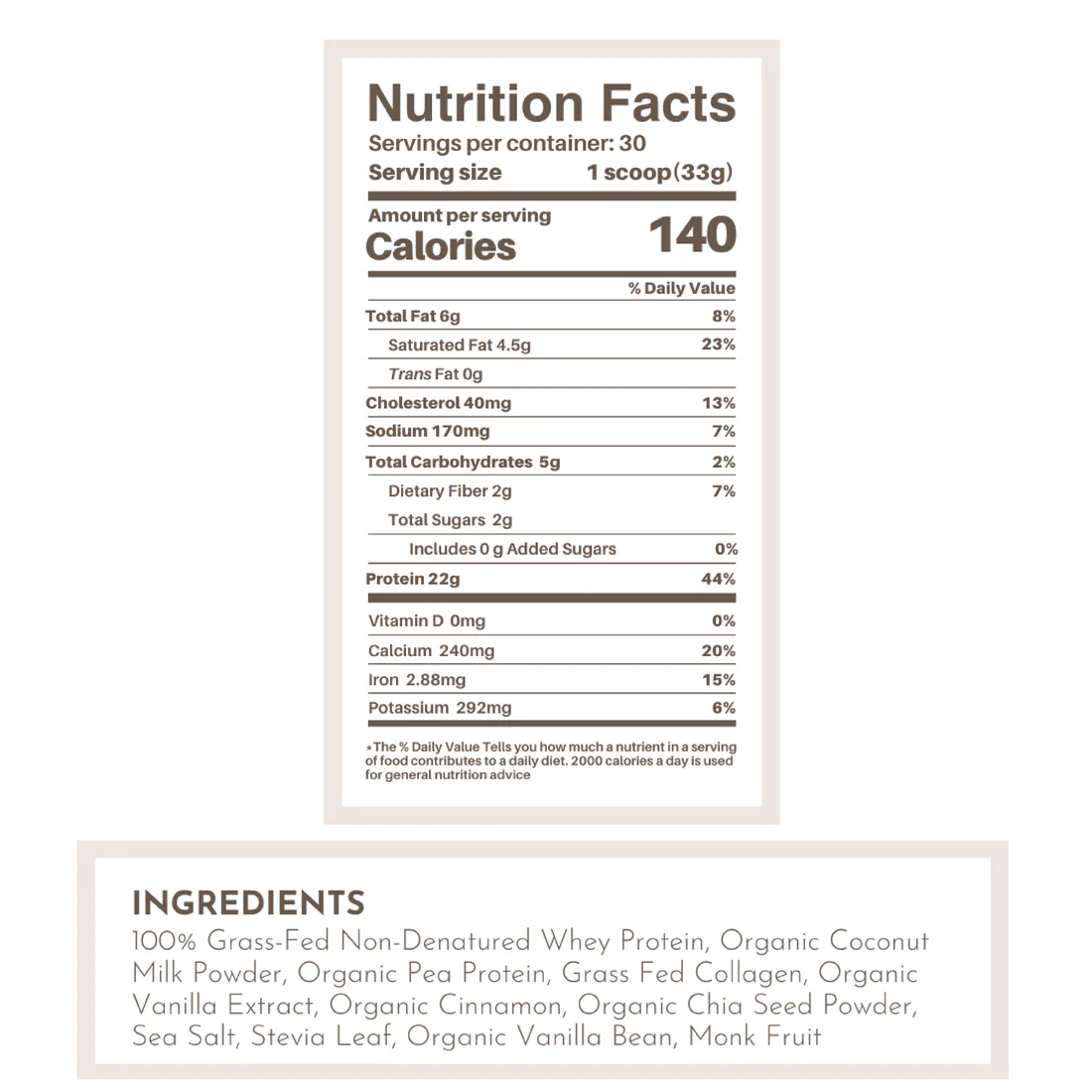 Free from artificial sweeteners, gluten, and sugar alcohols, our protein powder supports muscle repair and growth without unnecessary additives. Simply mix with water or your preferred milk for a smooth, satisfying vanilla shake that keeps you fueled and ready for whatever the day brings.